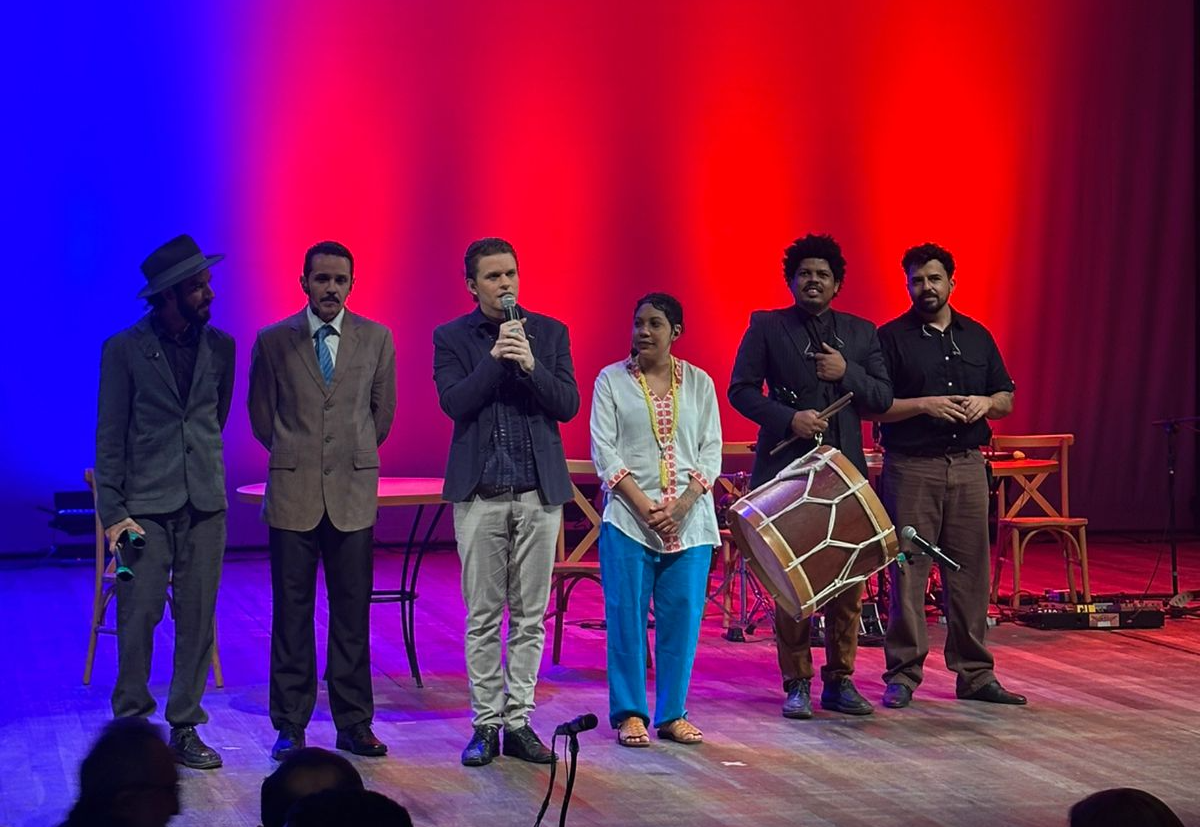 O espetáculo “Carlos Pena e Miró Cantam o Recife”, apresentado e dirigido por Ronaldo Correia de Brito, levou ao palco uma celebração sensível e potente da memória, da poesia e da identidade recifense durante a Fliporto 2025. A apresentação uniu teatro, música e declamação para construir uma experiência cênica que atravessou afetos e destacou a força cultural da cidade.